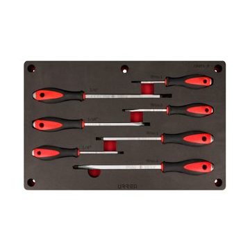 -Juego de destornilladores de golpe, con bandeja de espuma EVA diseñada para fijarla en la pared, manteniendo la herramienta en su lugar aunque este en posición vertical.-Punta negra para evitar el desprendimiento de cromo. Mayor capacidad de torque debido a su diseño de mango trilobular.-Casquillo de acero con doble tratamiento térmico y barra cuadrada permite el uso de llave para aplicar torque.-Dimensiones de destornilladores: Phillips® #1×3″, #2×4″, #3×6″ y #4×8″; plana 1/4″x4″, 5/16″x6″ y 3/8″x8″.-Ideales para llevar acabo trabajos de mantenimiento en general.