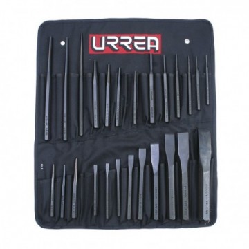 -Juego de puntos, punzones , cinceles y botadores 26 piezas Urrea-Fabricados en acero microaleado con temple.-Diseño del cuerpo hexagonal.