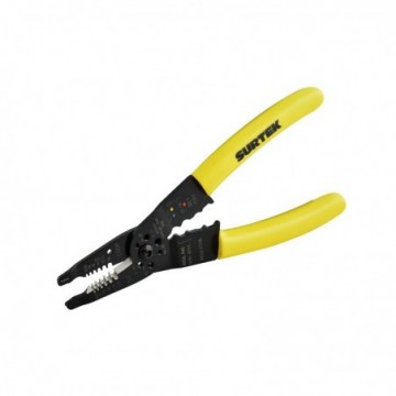 -Pinza pelacables 10-22AWG 8″ Surtek-Mordaza dentada-Cuenta con cortatornillos de medidas comunes-Capacidad de 10 a 22 AWG