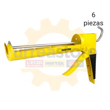-Material: acero. Material del mango: acero. Largo de barril interno: 9″. Material del embolso de espiga: Acero. Capacidad: 2500N. -Barillas de empuje: 2. Medida del cartucho: 9″. Largo del cartucho: 8-1/2″. Diámetro del cartucho: 2″. Tipo: Eje liso reforzado.-Cuerpo reforzado. Con cortador para puntas. Mango cubierto de plástico.-Pistola calafateadora es una herramienta de uso doméstico y profesional, permite la dosificación de selladores, adhesivos o silicones con un cierto contenido. Ofrece una aplicación precisa y controlada, evitando salpicaduras.